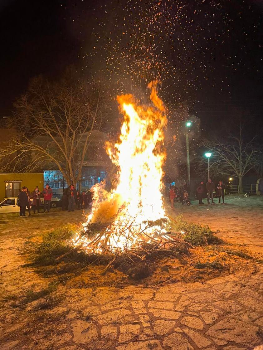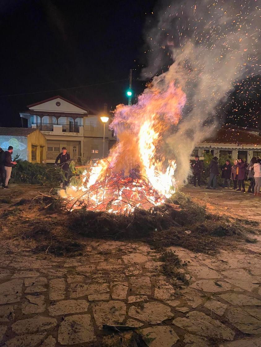 Γύρω από τη φωτιά σχηματίζεται ένας κύκλος με επικεφαλής τον κορυφαίο τραγουδιστή, ο οποίος τραγουδάει πρώτος και μόνος του τα αποκριάτικα τραγούδια ακολουθούμενος από το χορό που επαναλαμβάνει ομαδικά και με τον ίδιο τρόπο τον στίχο.