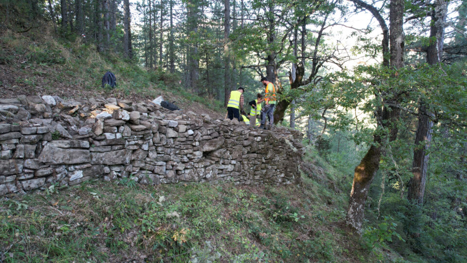 Κρυμμένα μέσα στο βαθύ πράσινο του δασοσκέπαστου λόφου κοντά στην κοινότητα των Φιλιππαίων, ήταν και τα εντυπωσιακά σωζόμενα κατάλοιπα ενός εκτενούς οχυρού των ελληνιστικών χρόνων που διερευνά πολυπληθής διεπιστημονική ομάδα του ΕΚΠΑ με επικεφαλής τον αναπληρωτή καθηγητή Αρχαιολογίας, Νίκο Δημάκη. Ξεκίνησε, όπως λέει ο ίδιος στην «Κ», «δειλά το 2024 αλλά η πρώτη αυτοψία θα μας μείνει αξέχαστη. Τριάντα φοιτητές φορτωμένοι με σύγχρονα και παραδοσιακά εργαλεία, επιχείρησαν την πρώτη κοπιώδη ανάβαση στην κορυφή του λόφου που βρίσκεται σε υψόμετρο 1.550 μέτρων από τη θάλασσα.